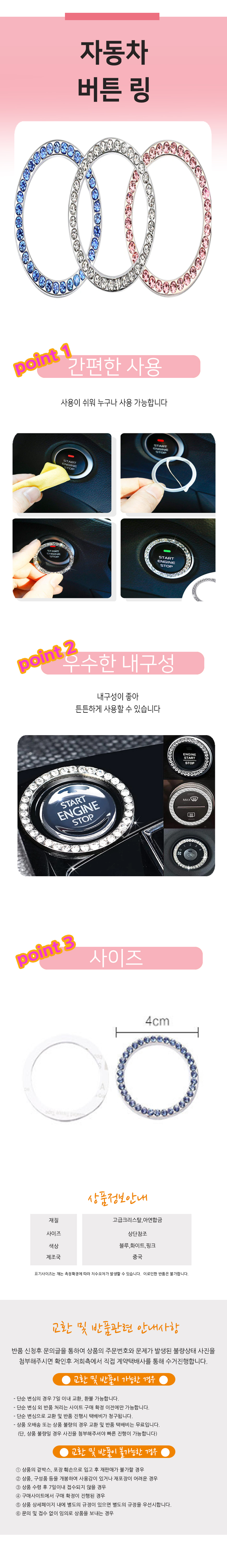 자동차버튼링 카악세사리 큐빅 버튼커버