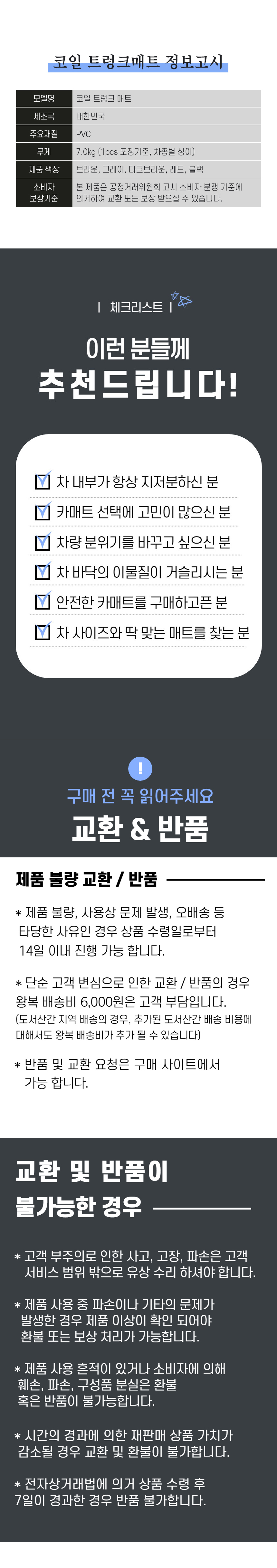 • 단순변심으로 인한 반품 시, 배송 완료 후 7일이 지나면 취소/반품 신청이 접수되지 않습니다.