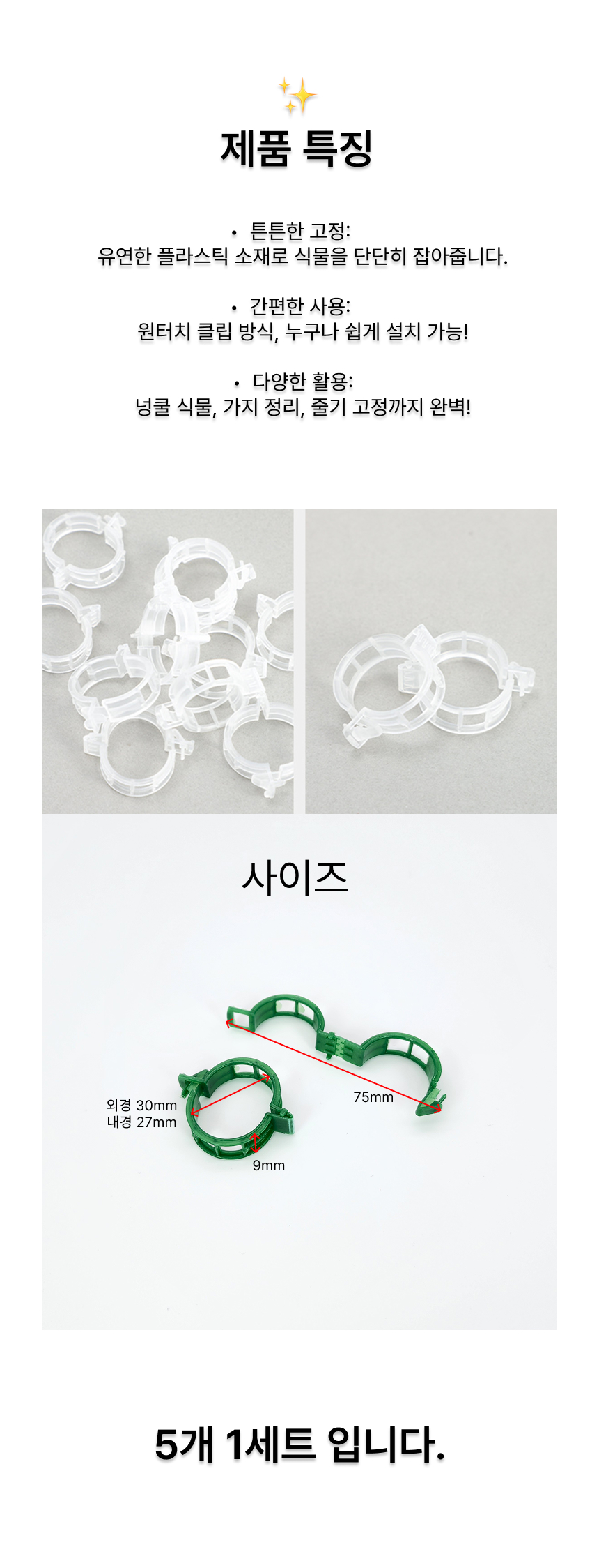 식물 줄기 고정집게 원예 지지대 클립 5P