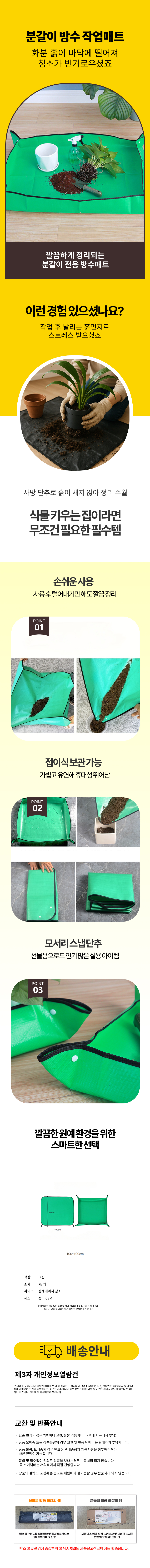 분갈이매트 다용도 방수 접이식 화분갈이 1m