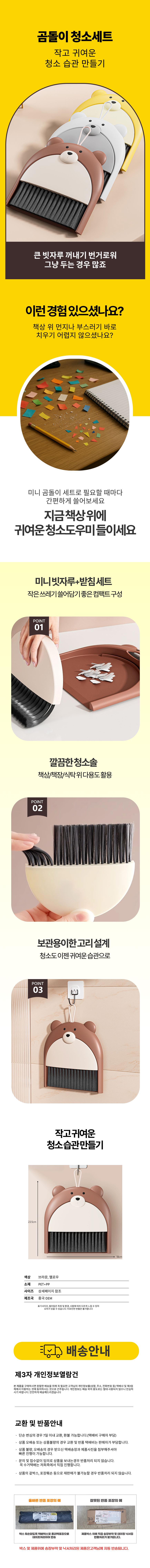 곰돌이 청소세트 청소도구 미니 빗자루 쓰레받기 세트