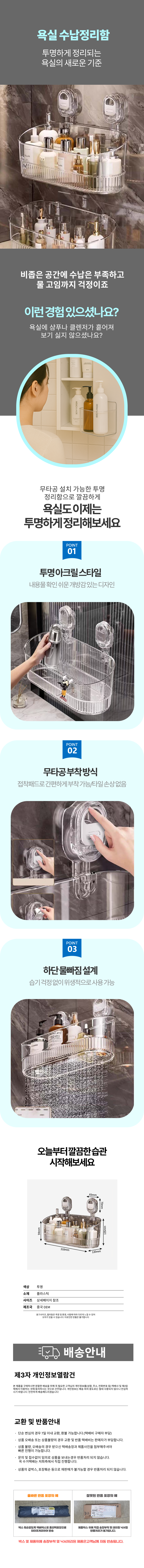 수납함 개수대 트레이 흡착 물빠짐 무타공 다용도