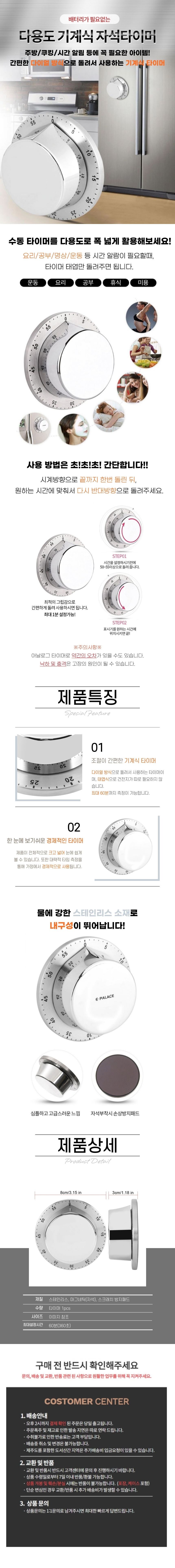 마그네틱 스테인레스 스틸 주방 타이머 기계식