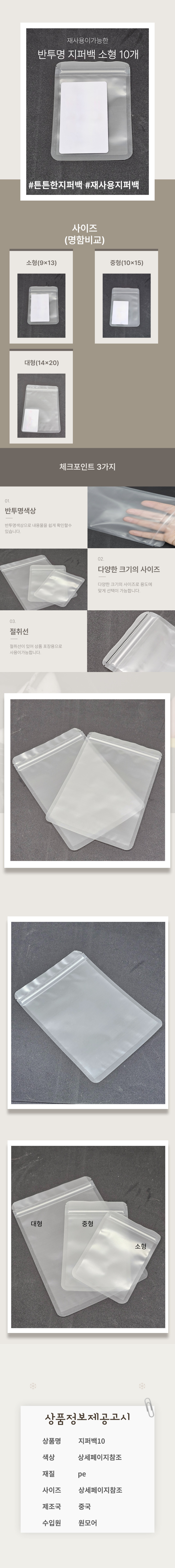 PVC 반투명 다회용 투명 소형 지퍼백 10장