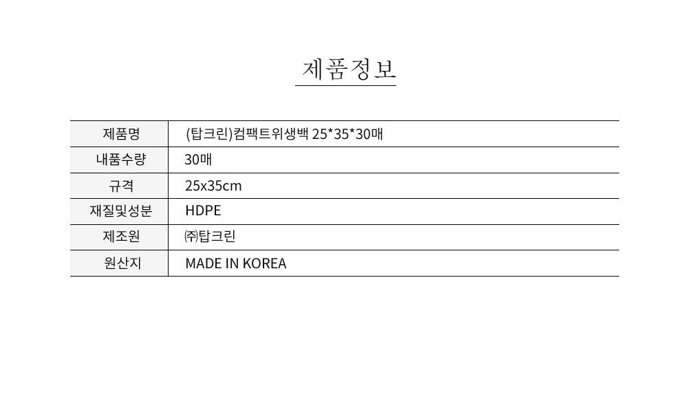 한장씩 뽑아쓰는 위생백 25x35xcm 30매 X20개