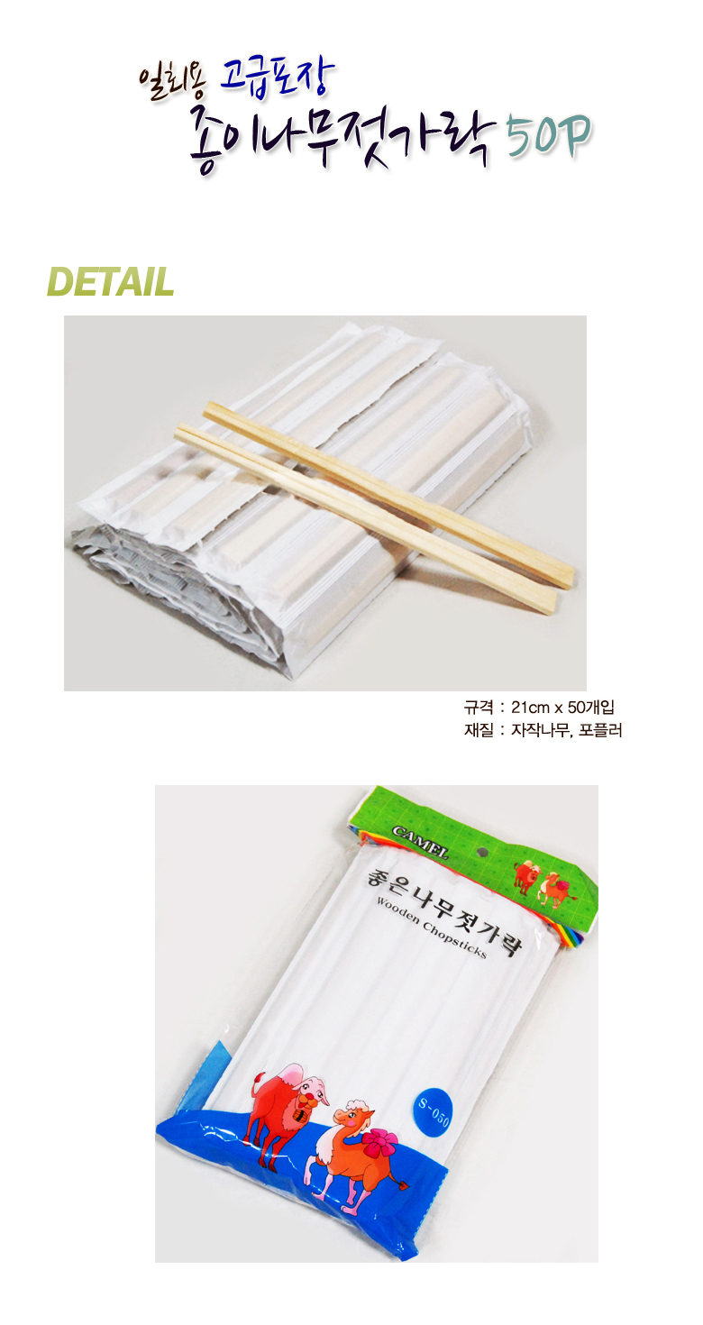 (5개묶음)종이나무젓가락50p