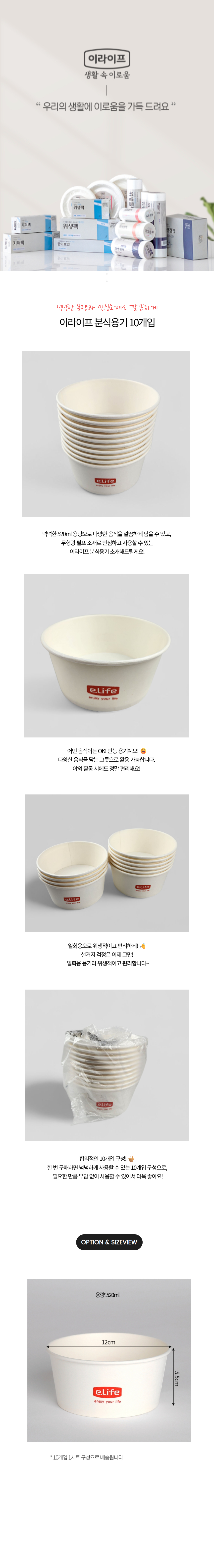 이라이프 분식용기 일회용 종이 그릇 520ml 10p