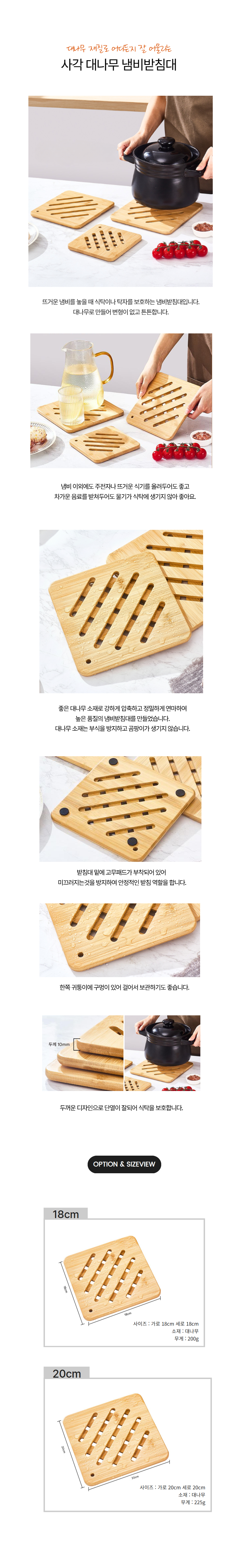 사각 두꺼운 대나무 냄비받침 18cm 20cm