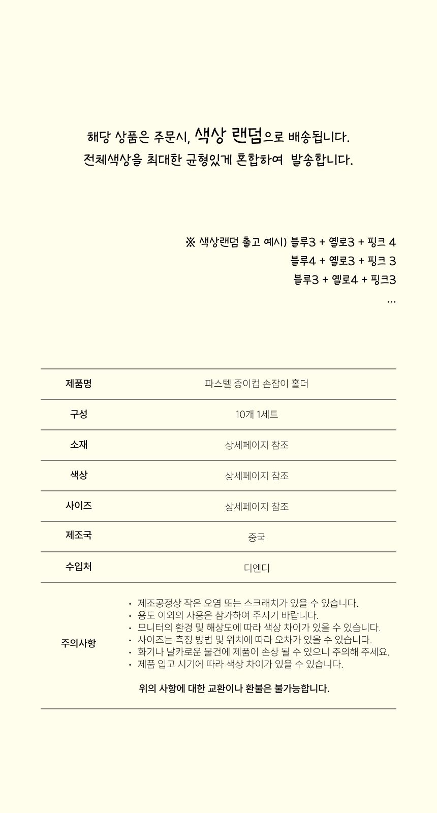 일회용컵 홀더 종이컵 손잡이 파스텔 컬러 10P 세트