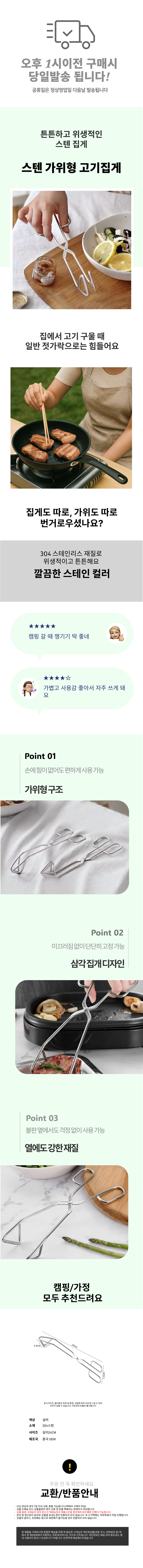 고기집게 스테인리스 가위형 삼각 집게 캠핑가위