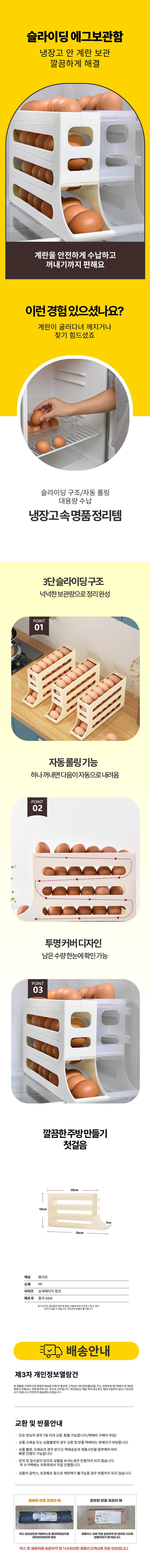 냉장고 3단 계란 수납함 슬라이딩 에그트레이 보관함