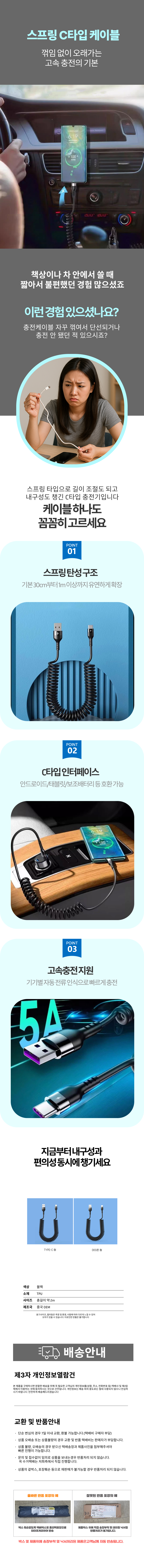 C타입 USB 충전 케이블 꺾임방지 급속충전기 트로피칼