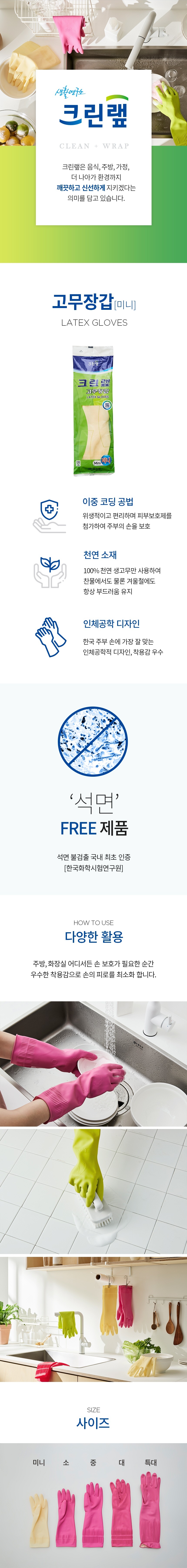 크린랲 일반 고무장갑 미니 크린랩 라텍스 글러브 1개입