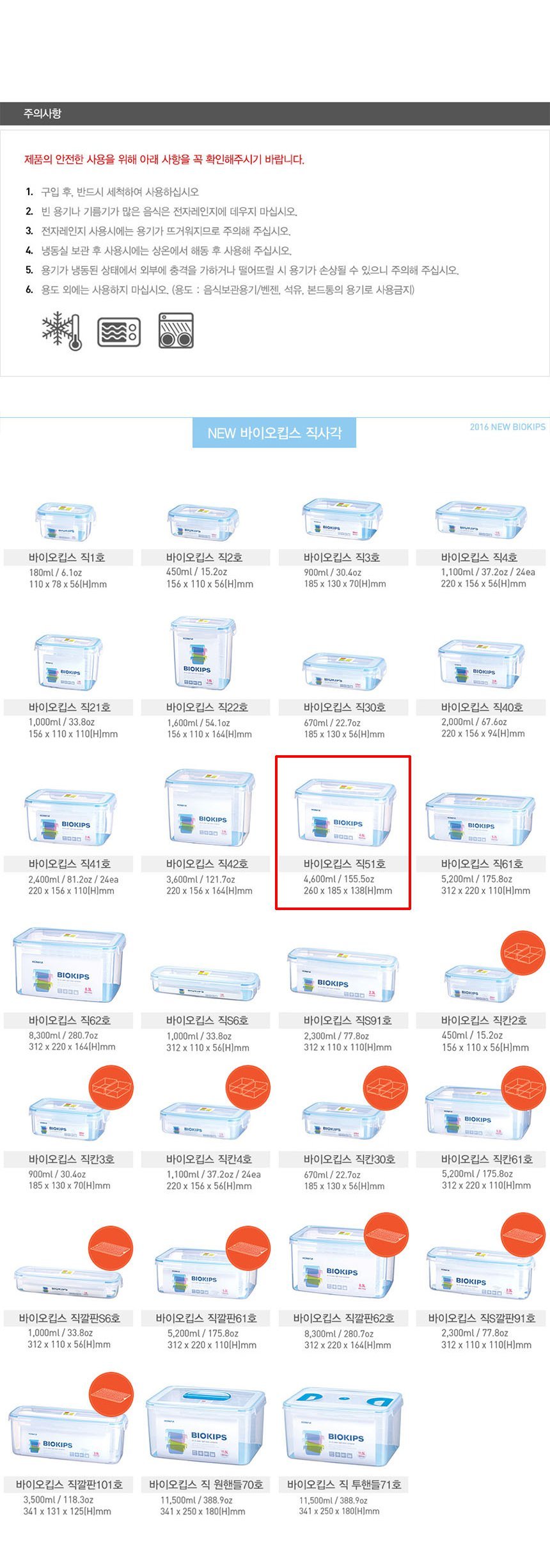 코멕스 바이오킵스 직사각51호 밀폐용기 투명용기
