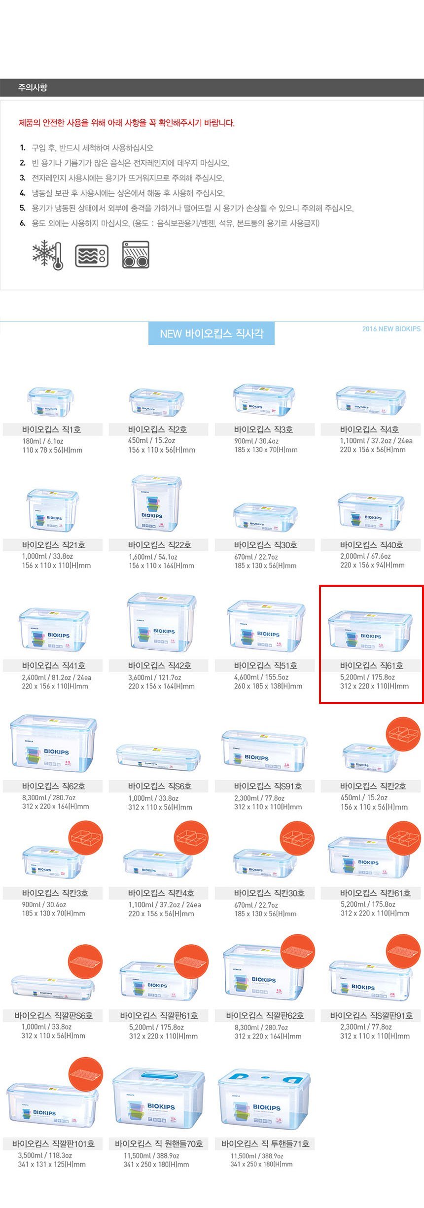 코멕스 바이오킵스 직사각61호 밀폐용기 투명용기