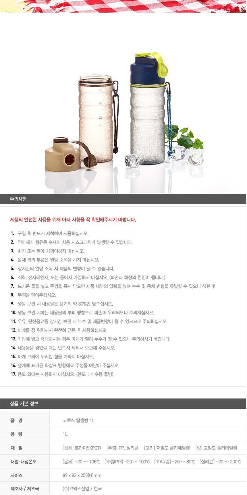 코멕스 TOP 물병 1.0L 탑물통 휴대용물병 트라이탄