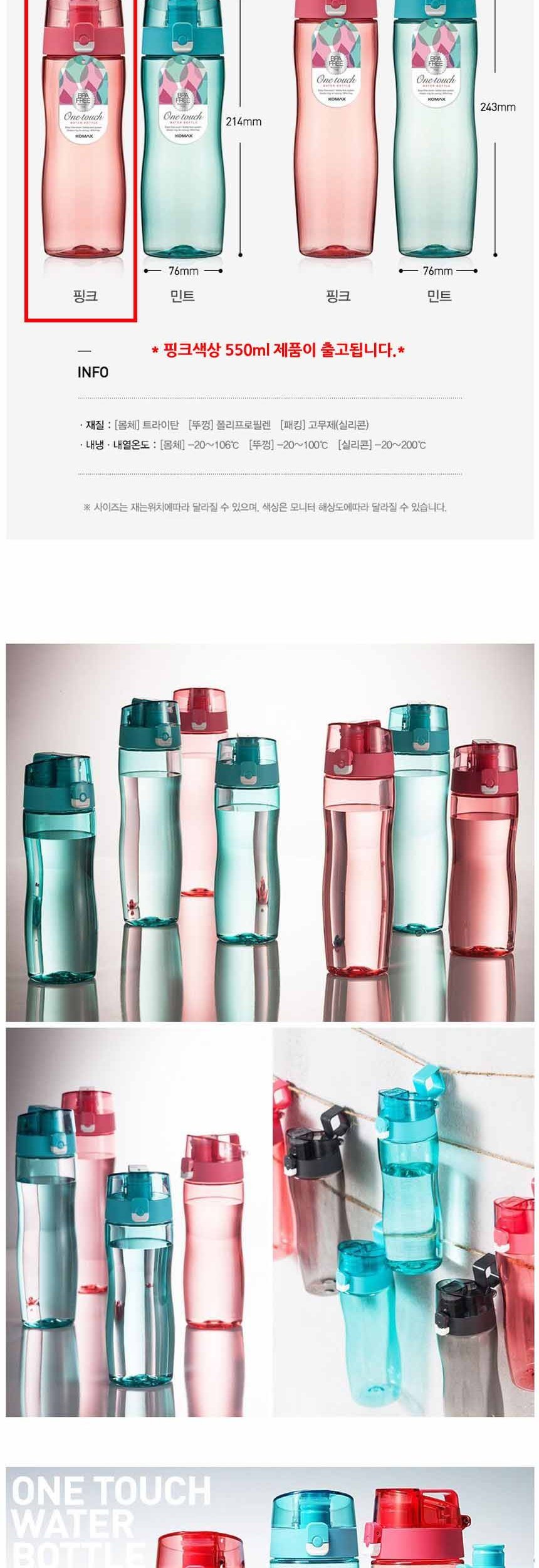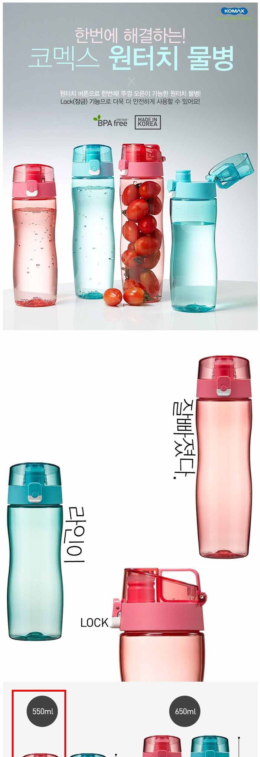 코멕스 원터치 물병 핑크 550ml