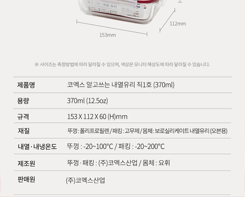 코멕스 알고쓰는 내열유리 직1호 370ml