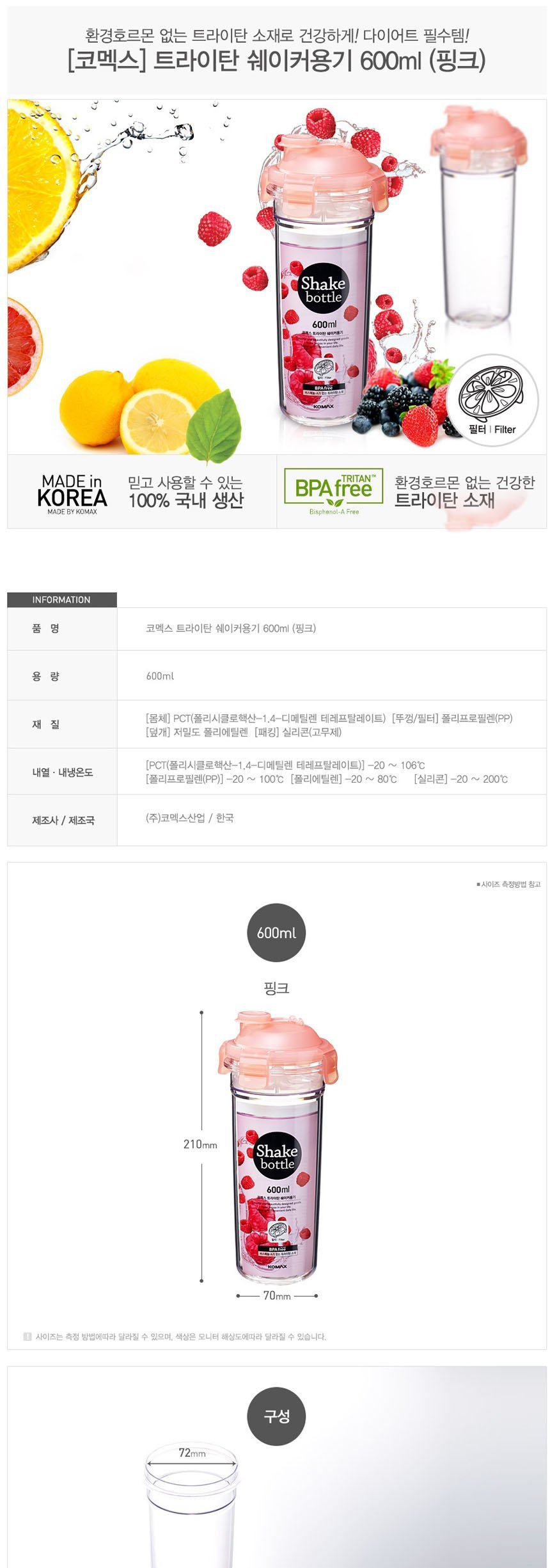 코멕스 트라이탄 쉐이커 물통 600ml