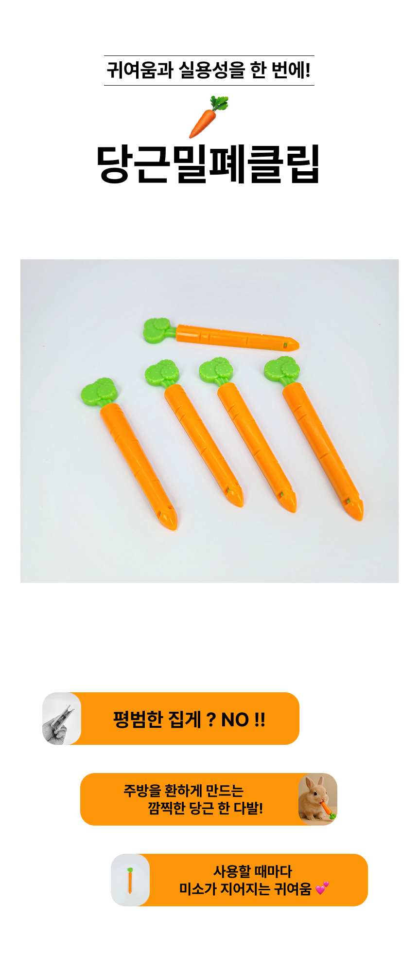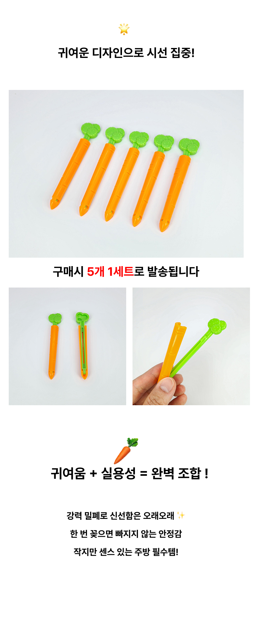 당근 밀폐 클립 빵 과자 봉투 밀봉집게 (5개 1세트)