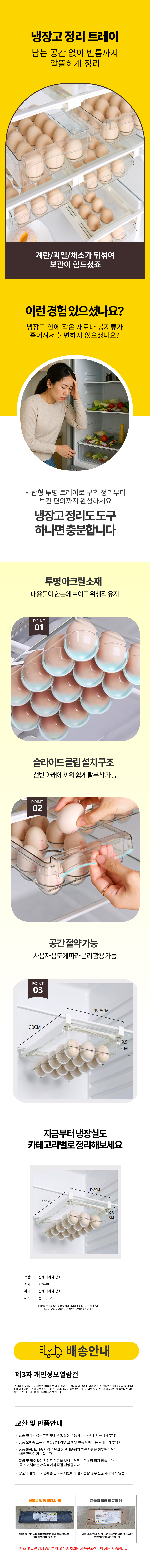 슬라이딩 계란 보관함 깨짐방지 달걀 정리 트레이