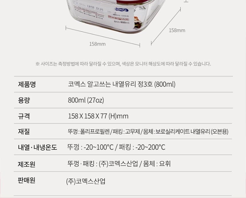 코멕스 알고쓰는 내열유리 정3호 800ml