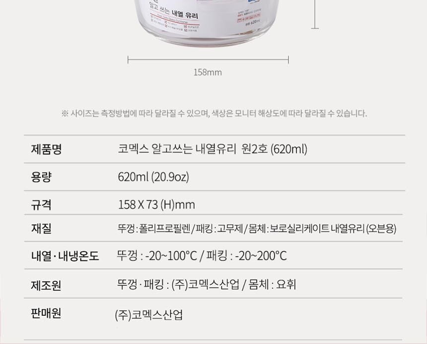 코멕스 알고쓰는 내열유리 원2호 620ml