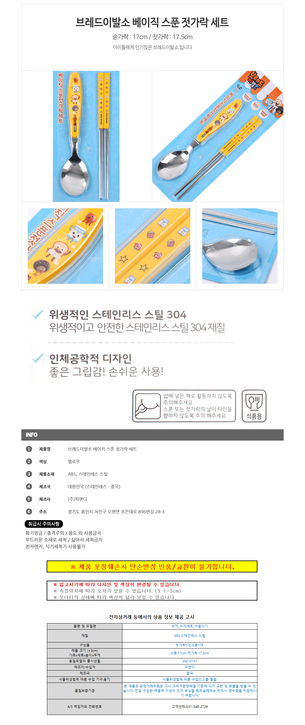 피앤디 브레드이발소 베이직 스푼젓가락세트