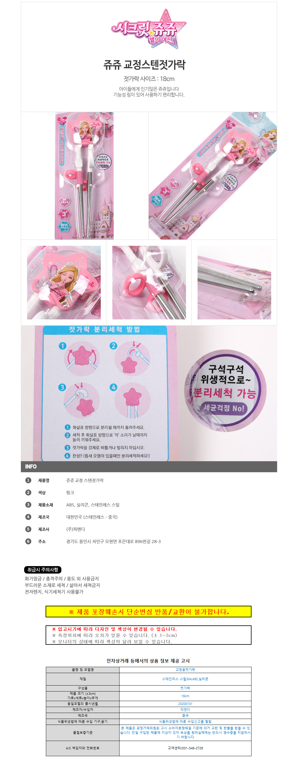 피앤디 쥬쥬 스텐 젓가락