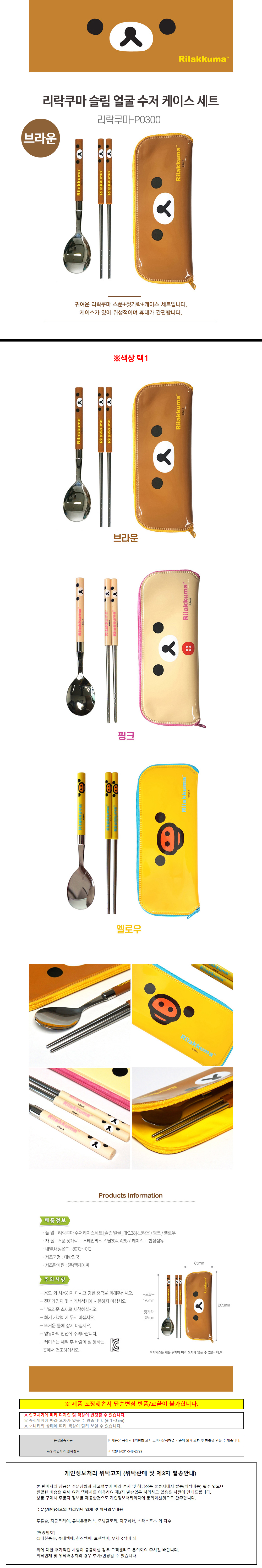 엠제이씨 리락쿠마 슬림 얼굴 수저 케이스 세트 브라운