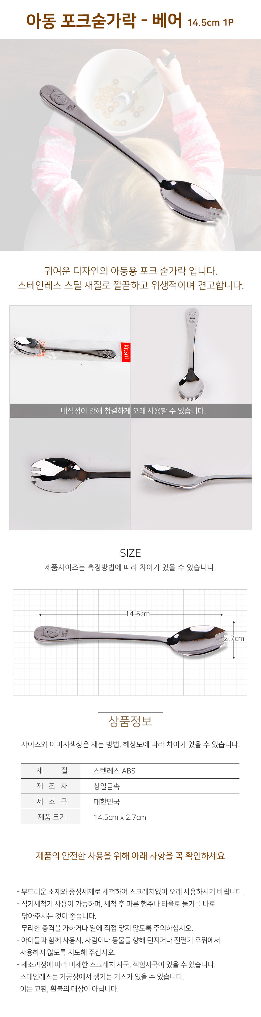 상일 베어포크숟가락 아동용 14.5cm 1P