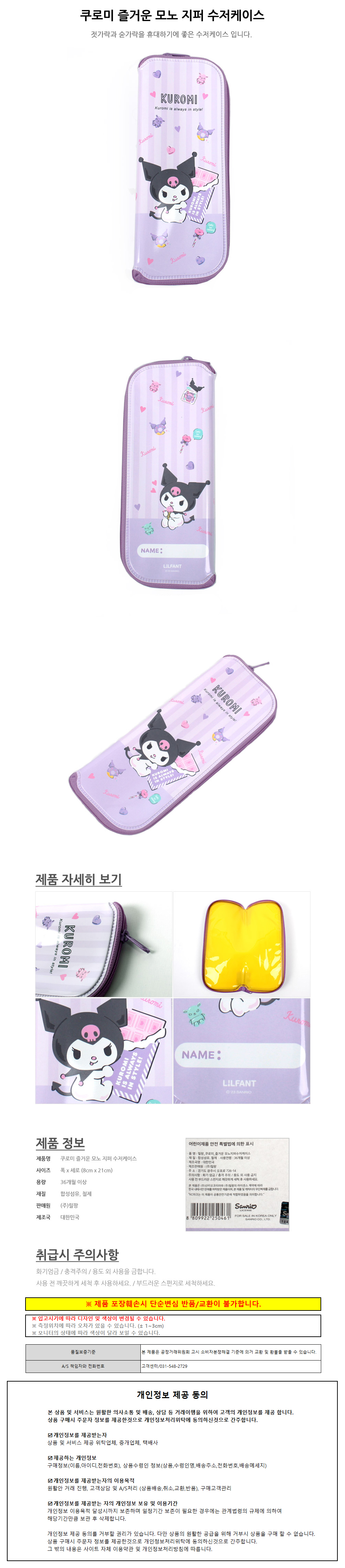 릴팡 쿠로미 즐거운 모노 지퍼 수저케이스