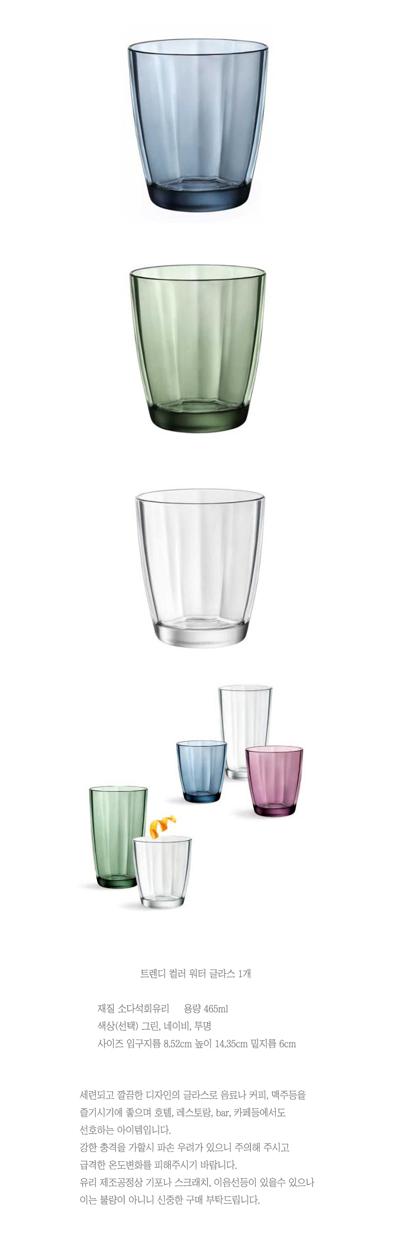 트렌디 컬러 워터 글라스 1개(색상 택1)