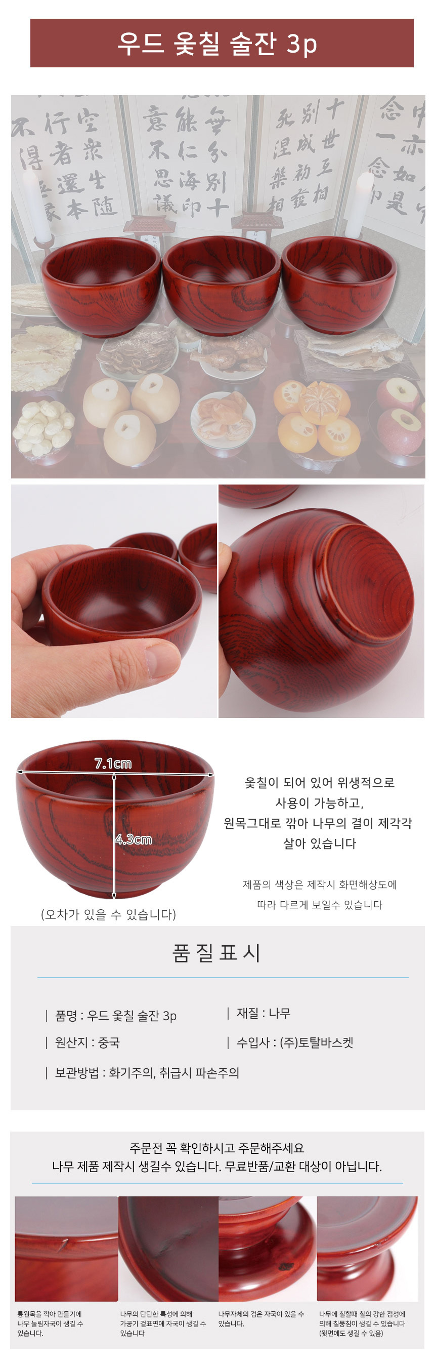 원목 술잔 3p 제수용품 나무 제기 제사 차례상 기제사