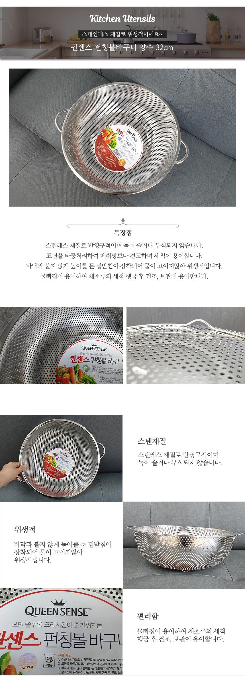 펀칭 스텐 바구니 32cm 채반 야채씻기 과일소쿠리