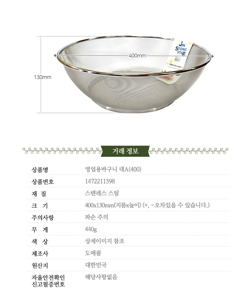 식당용 스텐 바구니 대 400mm 채반 야채바구니