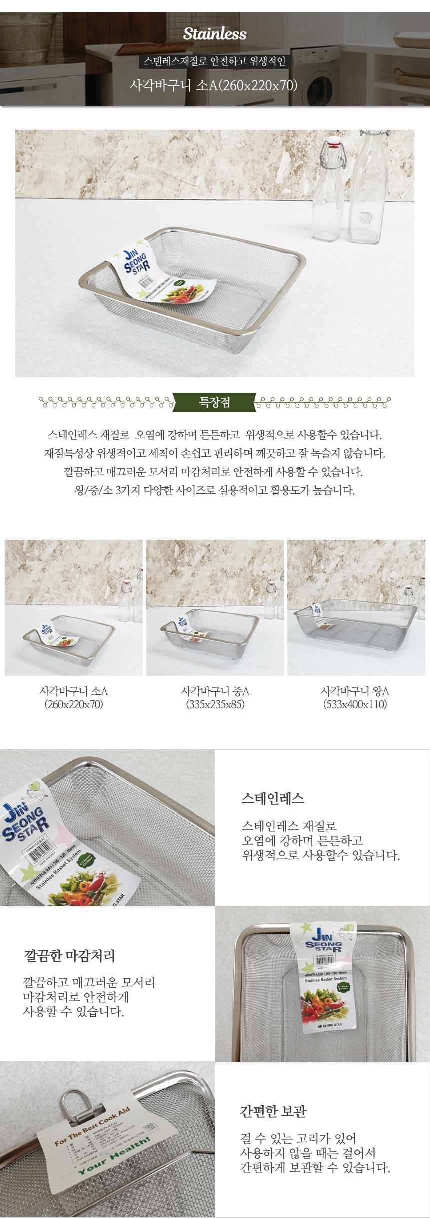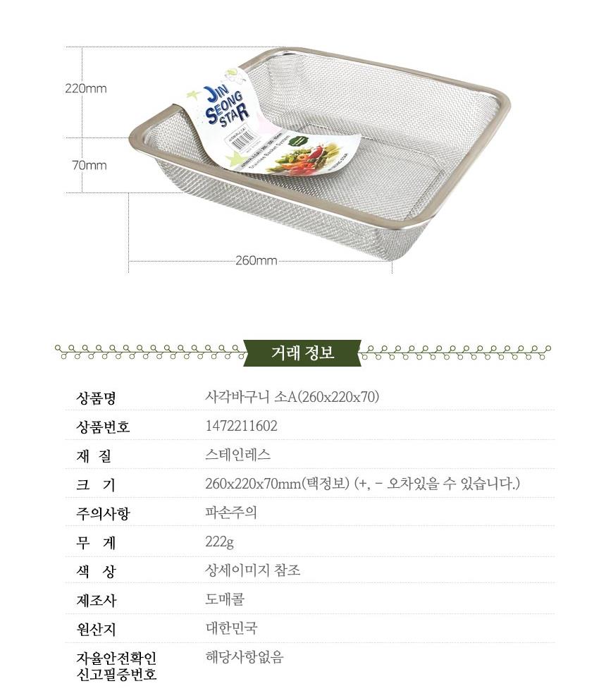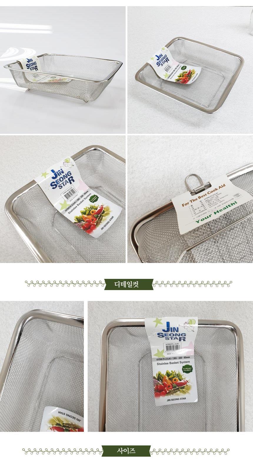 스텐 사각바구니 소 A형 촘촘망 소쿠리바구니 채반