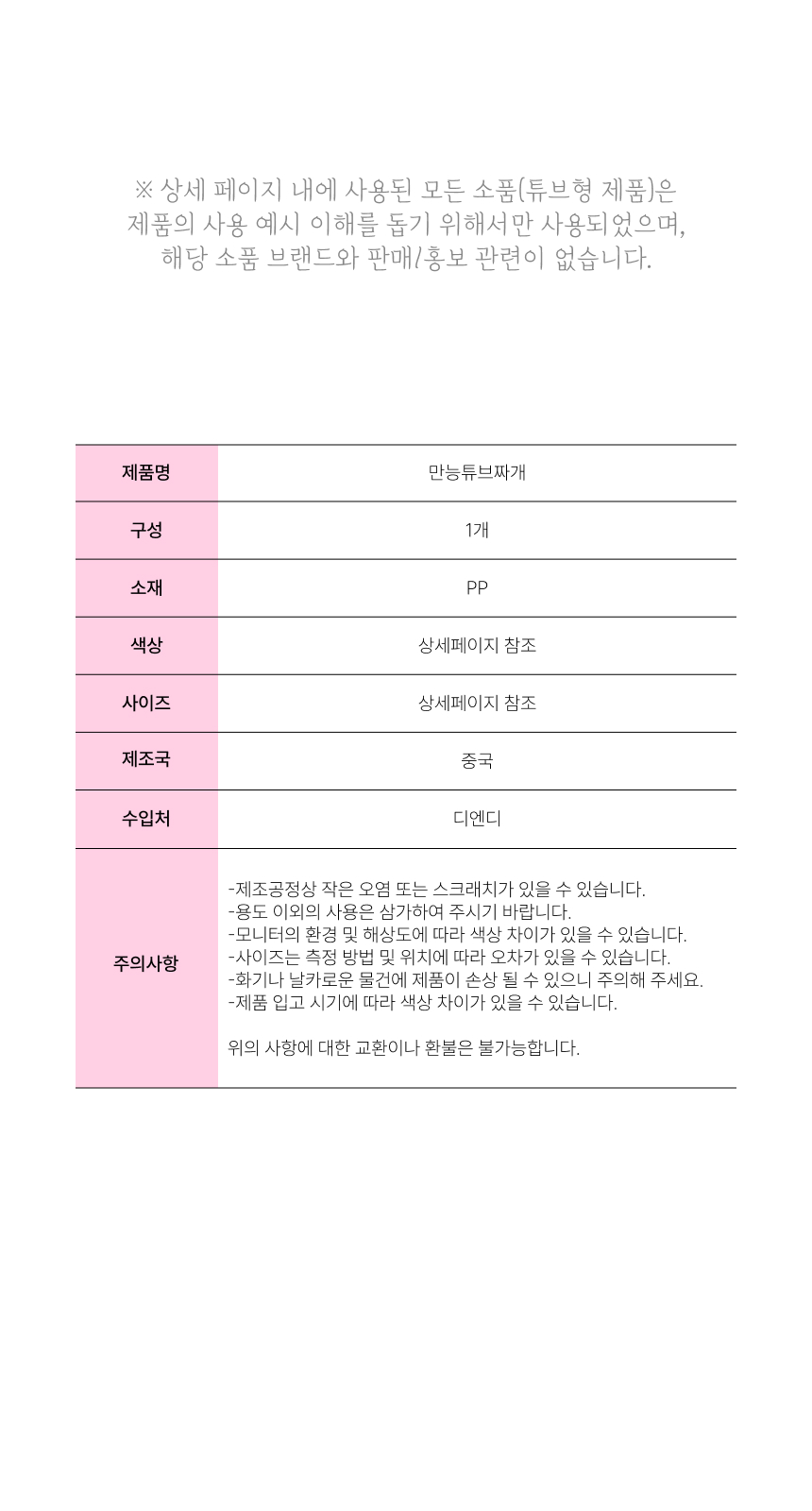품명 및 모델명 상세설명페이지 참고