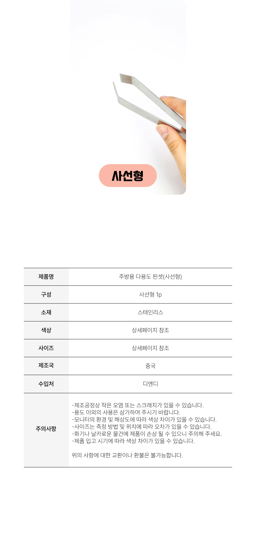생선 가시 돼지털 제거 핀셋 (사선형)
