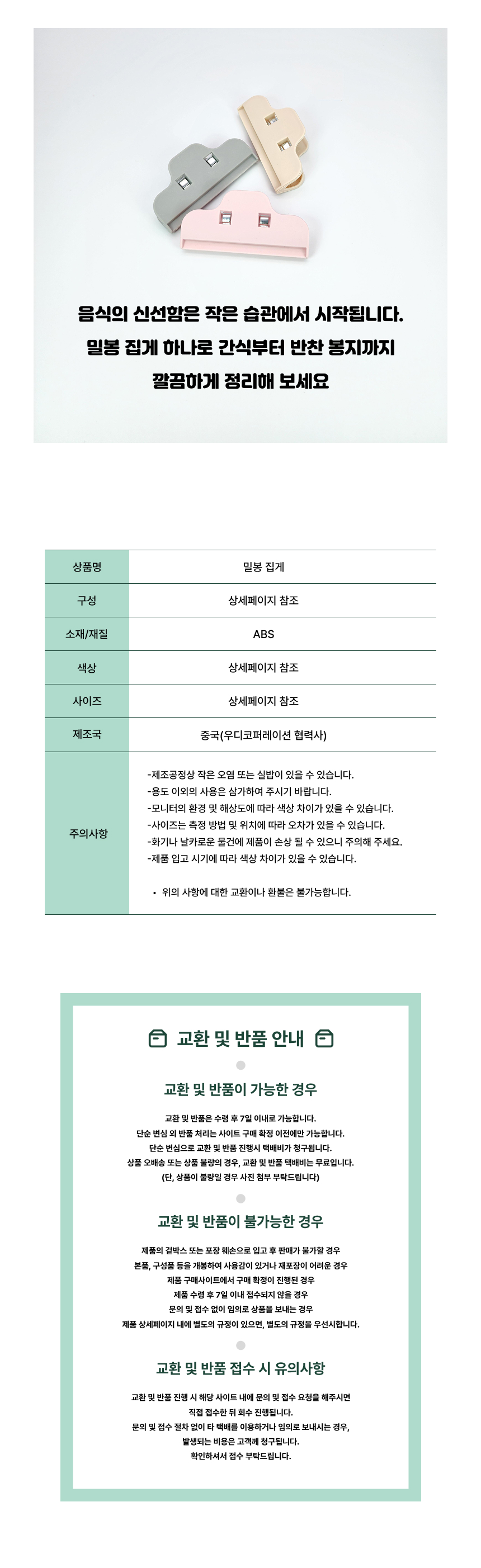 밀봉 집게 빵 과자 봉투 비닐 감자튀김 밀폐클립