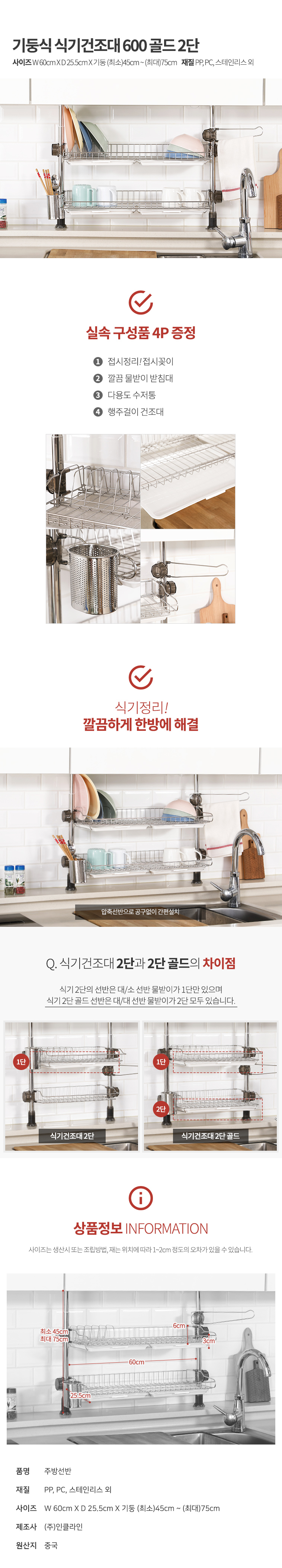 인클라인 기둥식 스텐 식기건조대 600 2단 골드