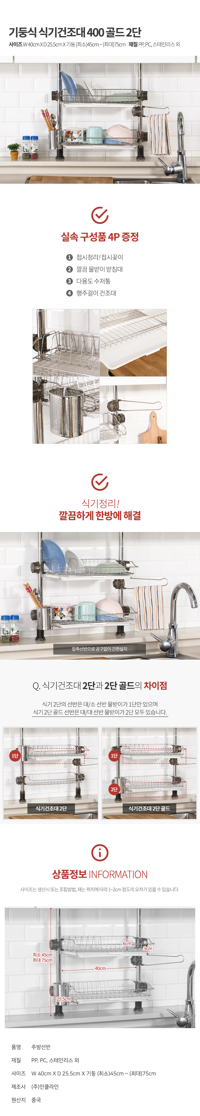 인클라인 기둥식 스텐 식기건조대 400 2단 골드