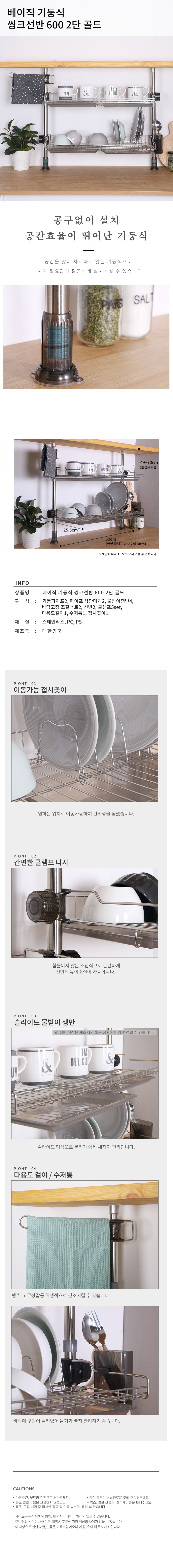 베이직 기둥식 싱크선반 2단 006 골드