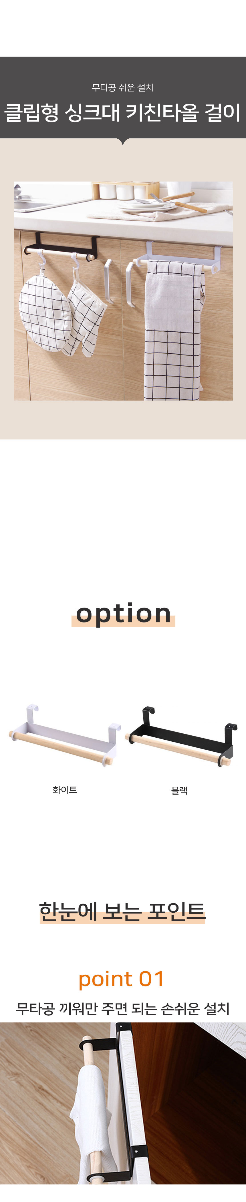 [ 주방 수건 정리 수납 키친 타올 걸이 행주 홀더 블랙 ]