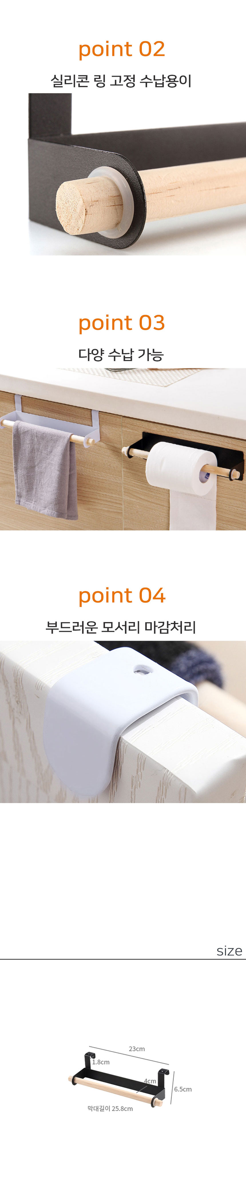 주방 수건 정리 수납 키친 타올 걸이 행주 홀더 블랙