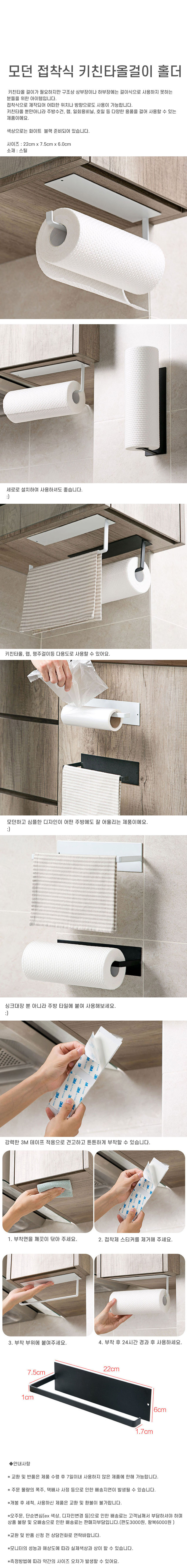 미니멀 부착형 키친 타올걸이1개(색상 택1)