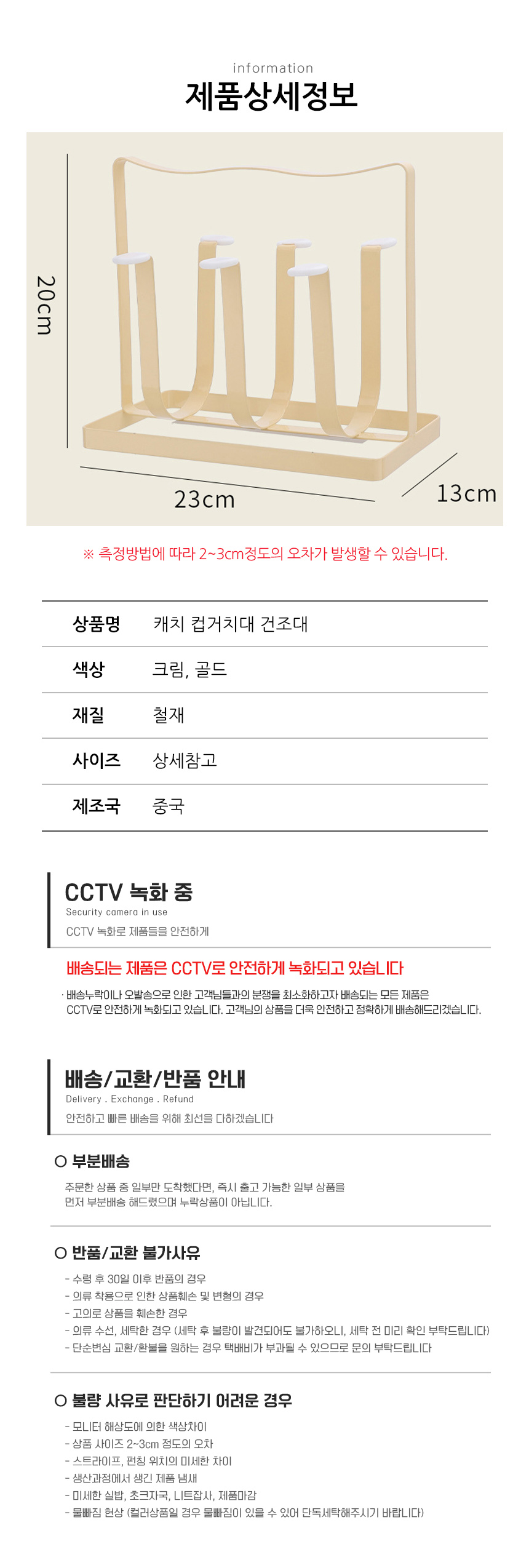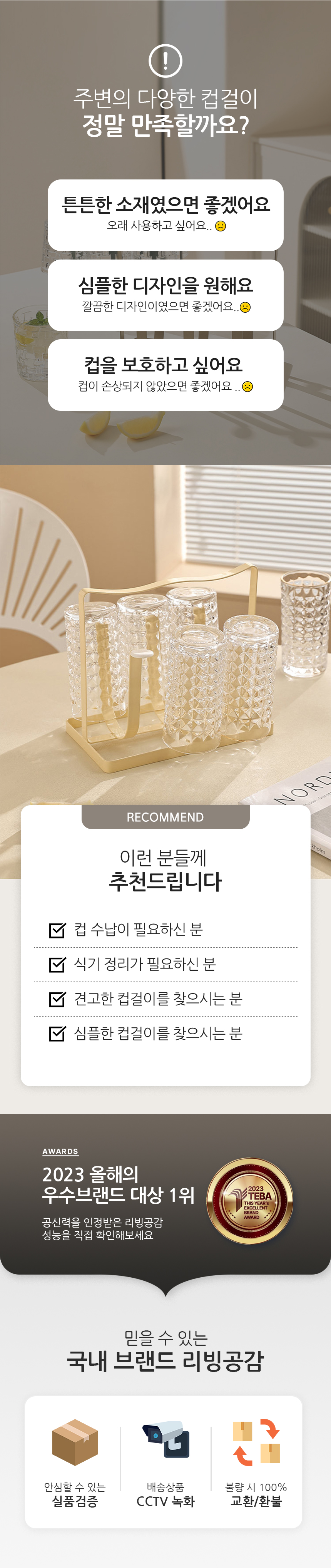 주방 컵 텀블러 정리 수납 걸이 거치 대 꽂이 골드