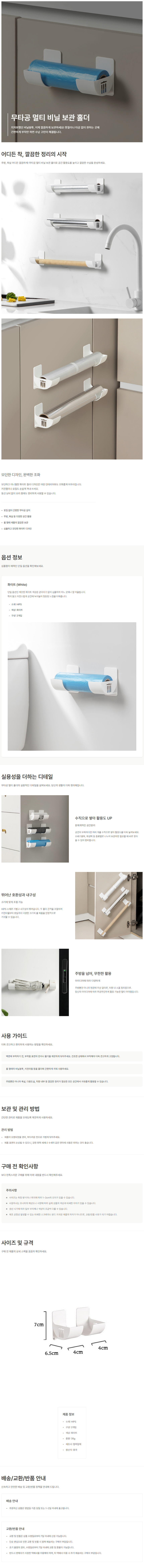 다용도 멀티 주방 틈새 보관 비닐 봉투 걸이 무타공 행거 고리 고정 홀더 악세사리