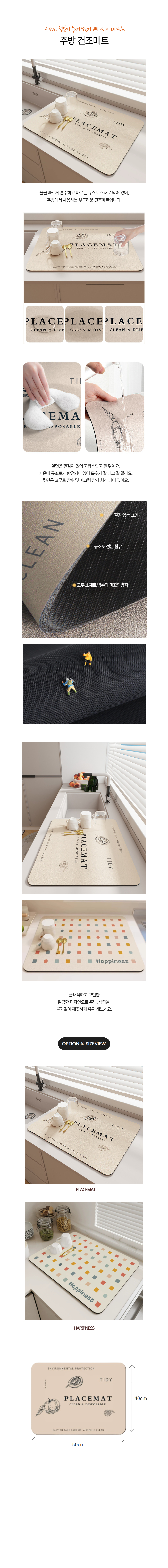 설거지 식기 건조 드라잉 매트 HAPPINESS