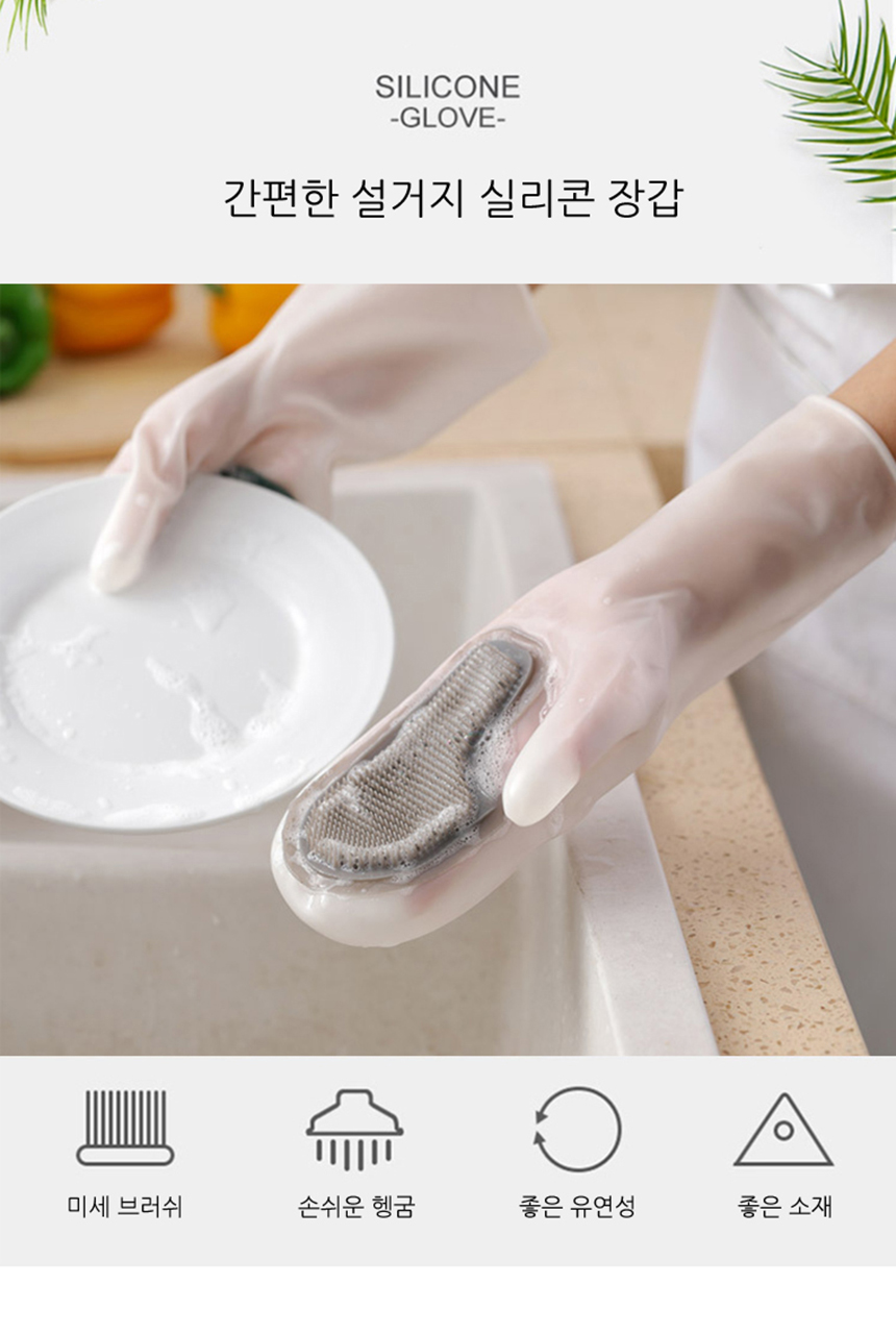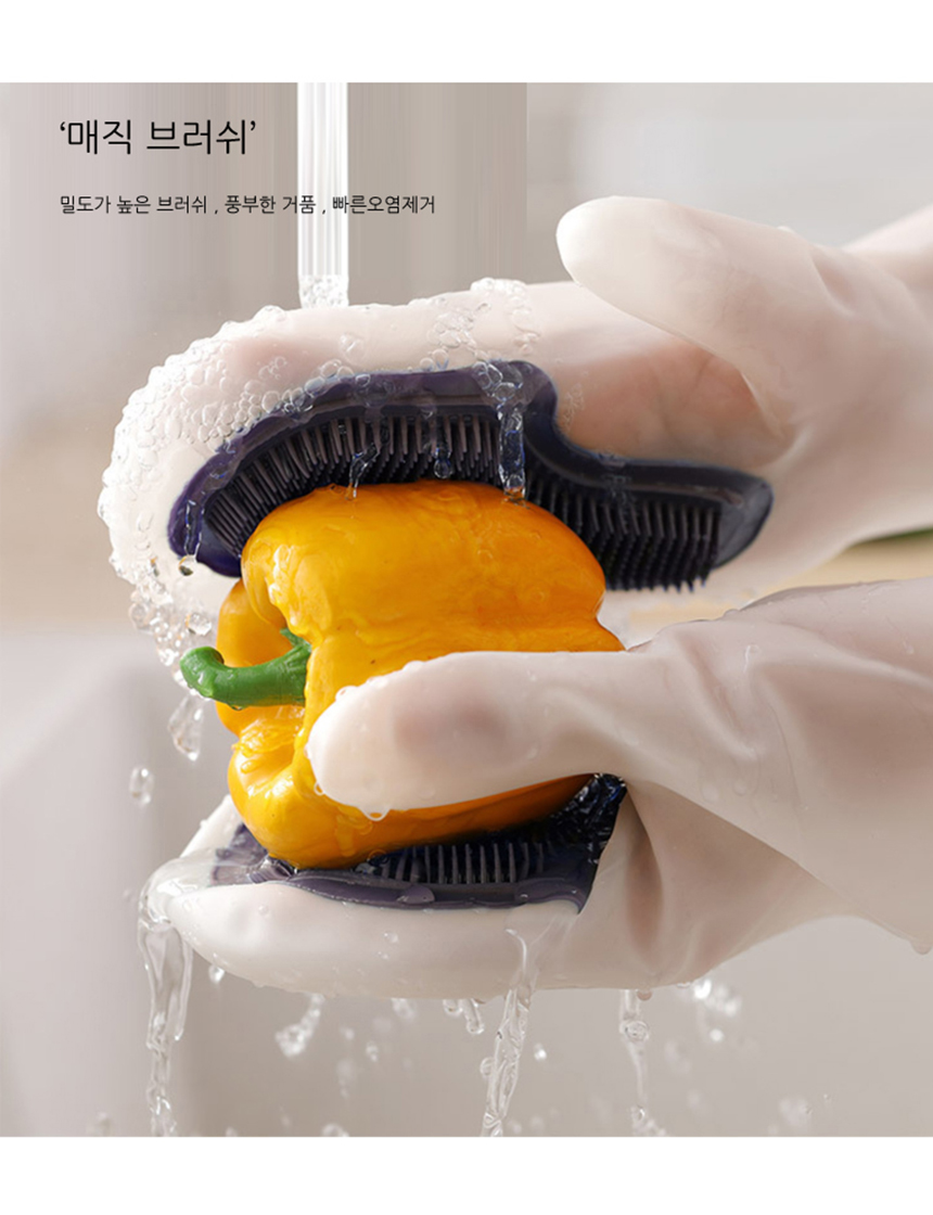주방 욕실 일체형 수세미 브러쉬 설거지 고무 장갑